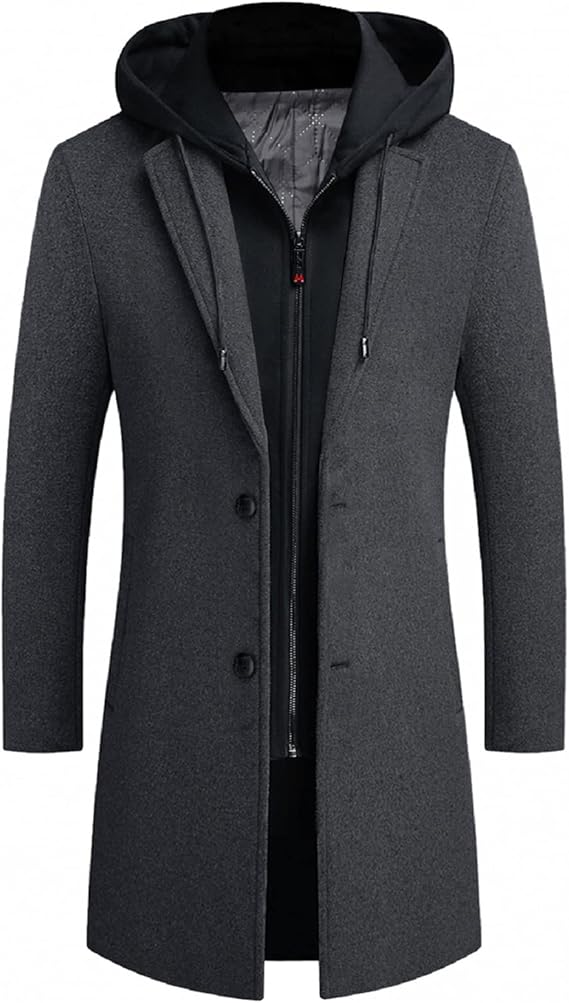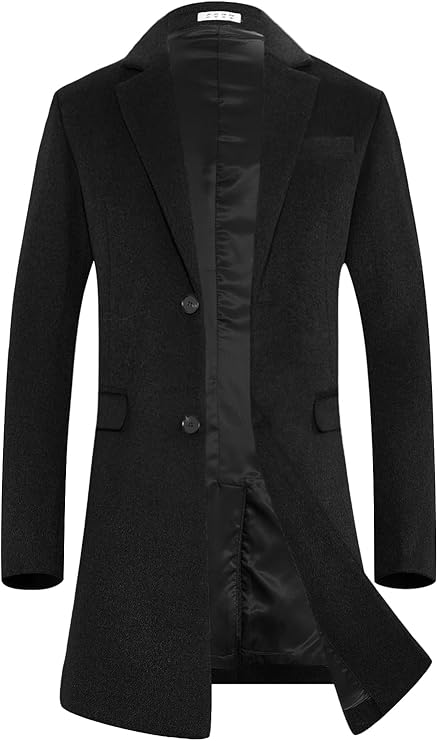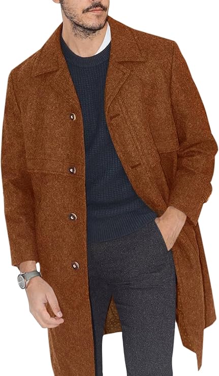Mens Trench Coat Wool Blend Notch Lapel Single Breasted Long Pea Coat Casual Business Overcoat