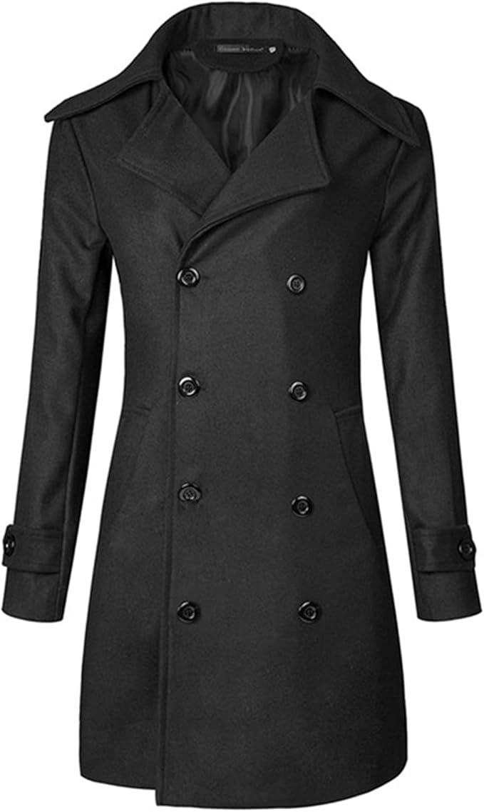 Mens Trench Coat Notch Lapel Double Breasted Casual Pea Coat Winter Warm Classic Overcoat