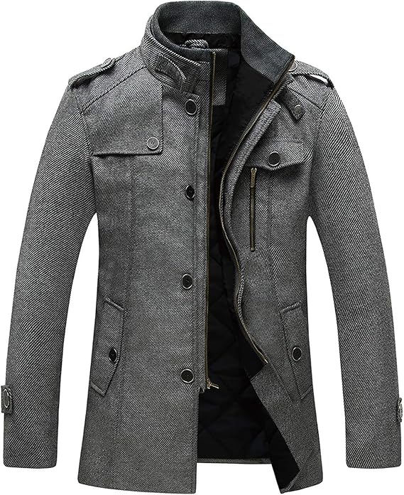 Men's Wool Blend Jacket Stand Collar Windproof Pea Coat
